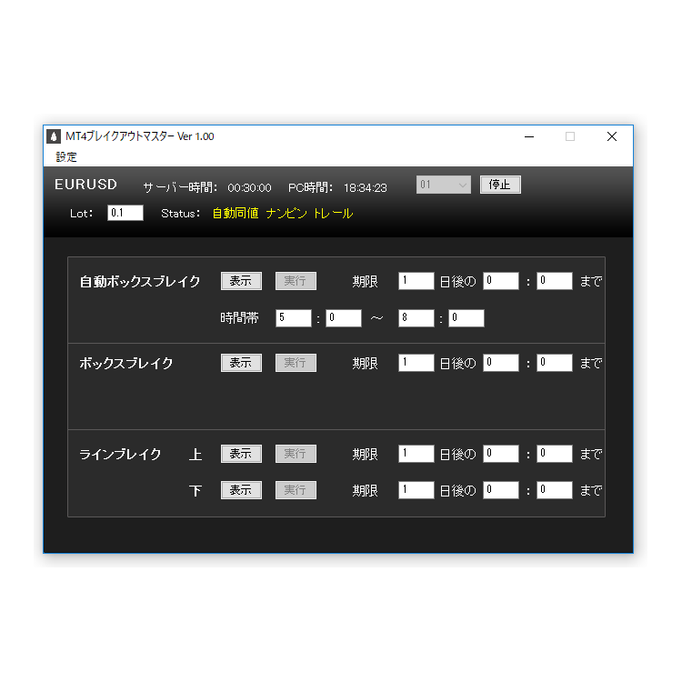 MT4のラインブレイク、ボックスブレイクのトレード用補助ソフトです。